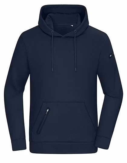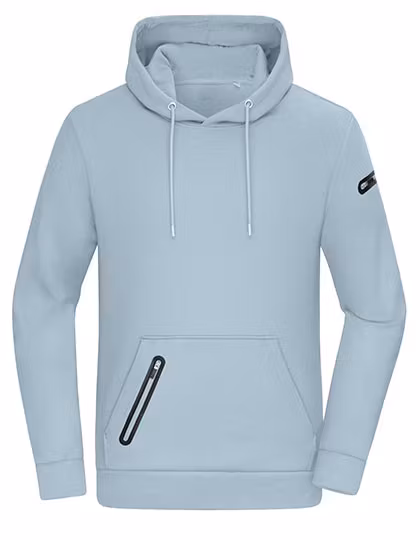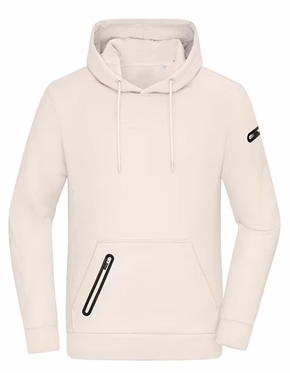 NSW Men’s Hoodie Interlock är en hoodie tillverkad med interlock-stickning som är en teknik där tyget får en tät och jämn struktur, vilket gör det mjukt och slitstarkt. Hoodien består av 63 % bomull, 33 % polyester och 4 % elastan, vilket ger en kombination av komfort, stretch och hållbarhet. Dess ytvikt är 360 g/m², vilket innebär att det är ett relativt tjockt och robust tyg. Hoodien har en normal passform, långärmad med manschetter, kängurufika och en extra blixtlåsförsedd ficka samt en blixtlåsförsedd ficka på vänster ärm och huva med dragskor och snöre för justering. Jackan har en modern design som passar bra för vardaglig användning. Hoodien är certifierad med OEKO-TEX® STANDARD 100.